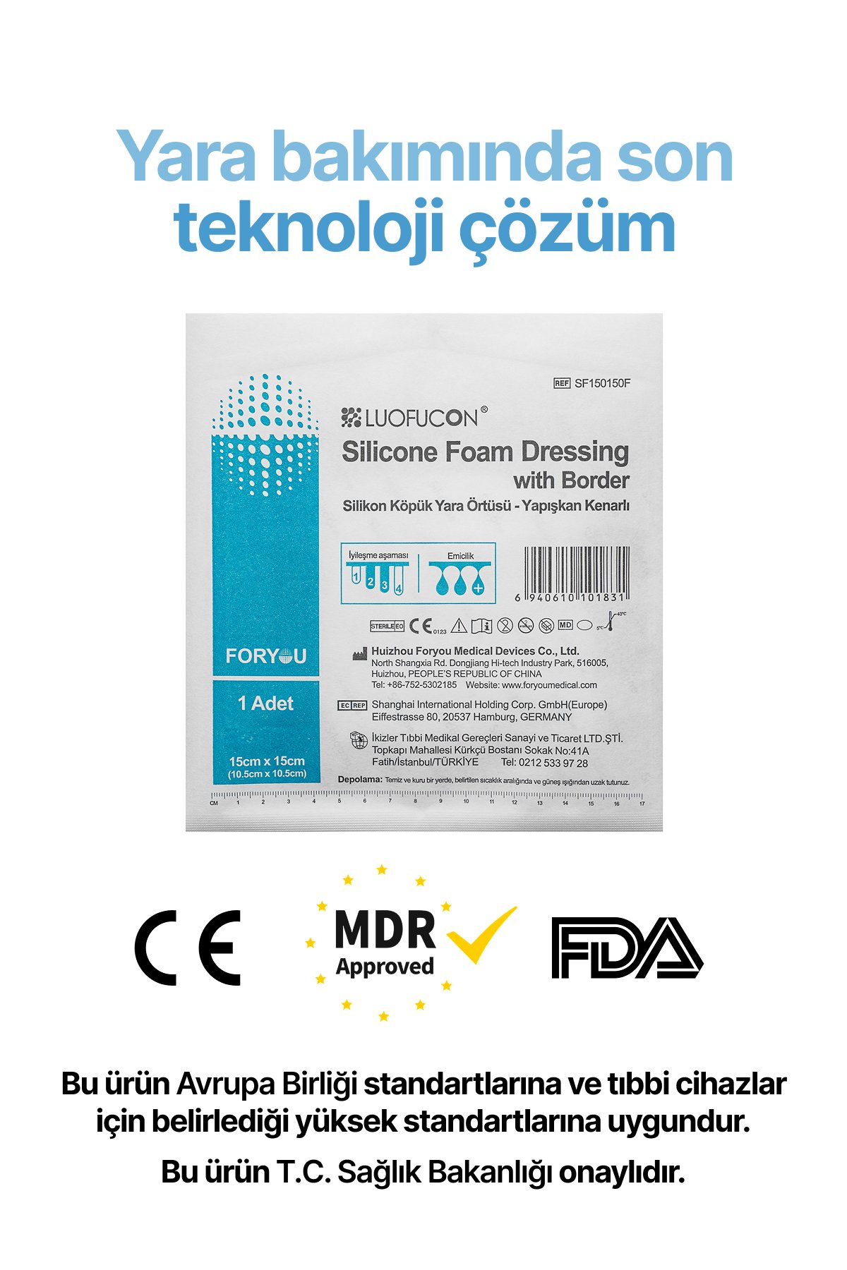 LUOFUCON® Silikon Köpük Yara Örtüsü (Border) – 15×15 cm (1 Adet)