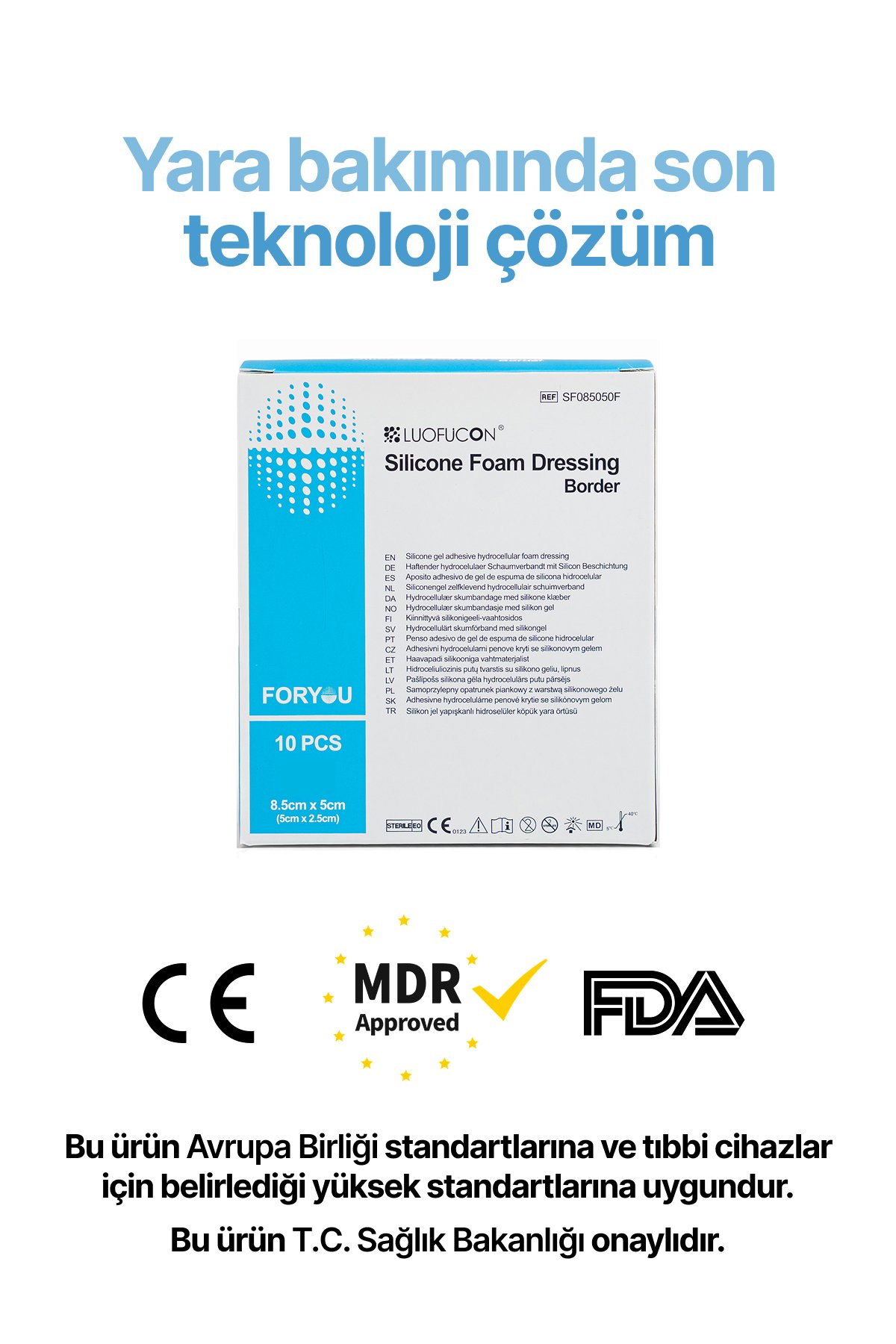 LUOFUCON® Silikon Köpük Yara Örtüsü (Border) – 8,5×5 cm (10 Adet)