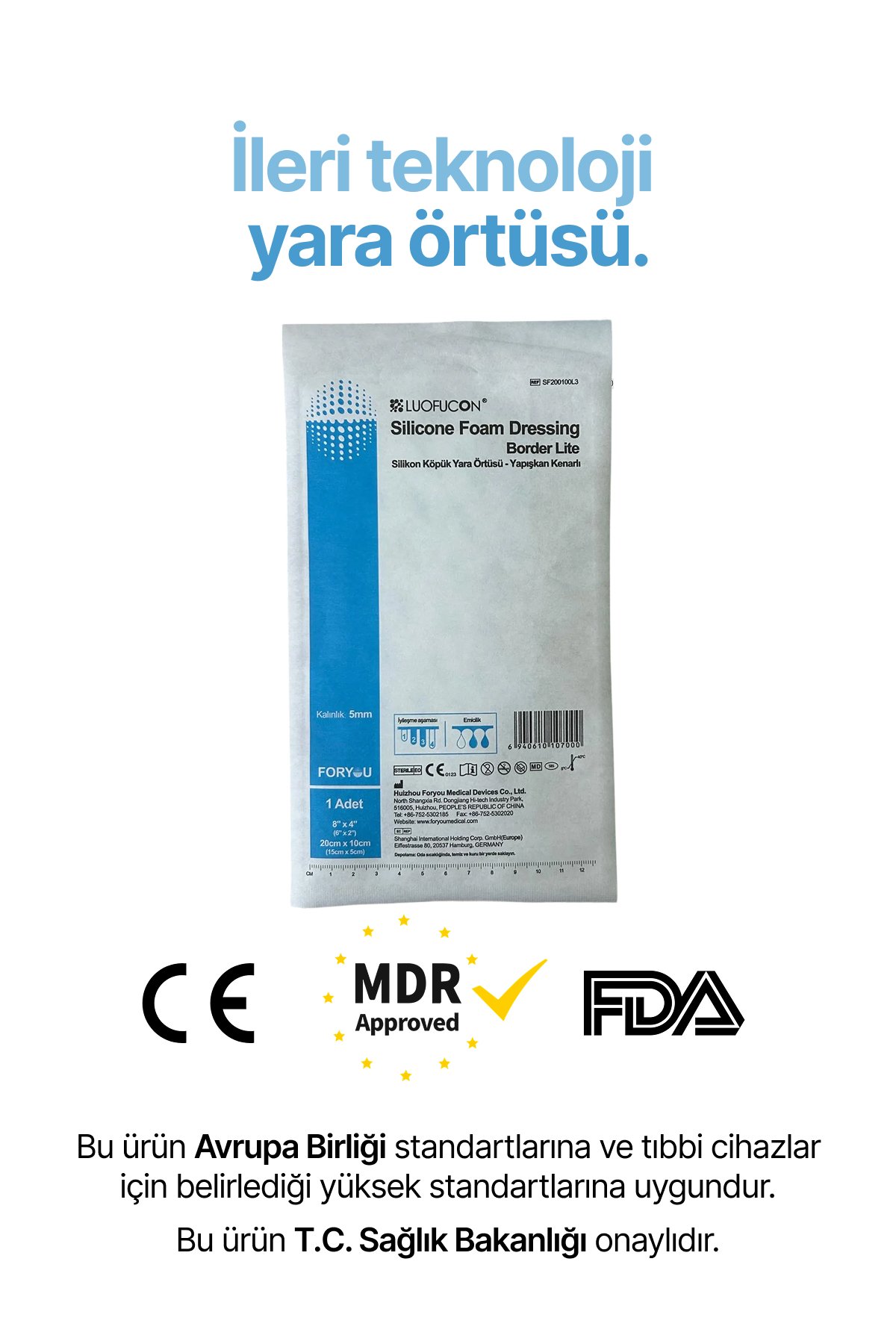 LUOFUCON® Silikon Köpük Yara Örtüsü (Border lite) – 20×10 cm (1 Adet)