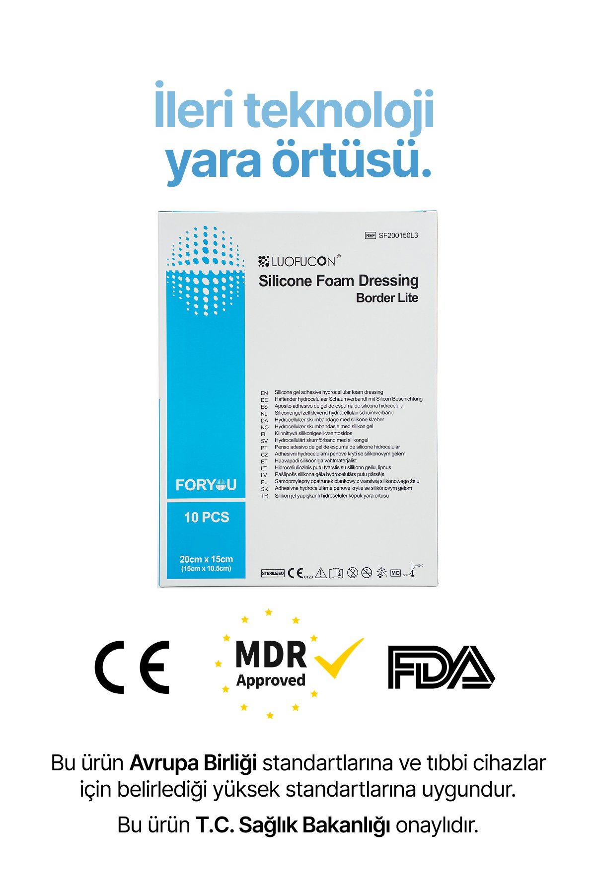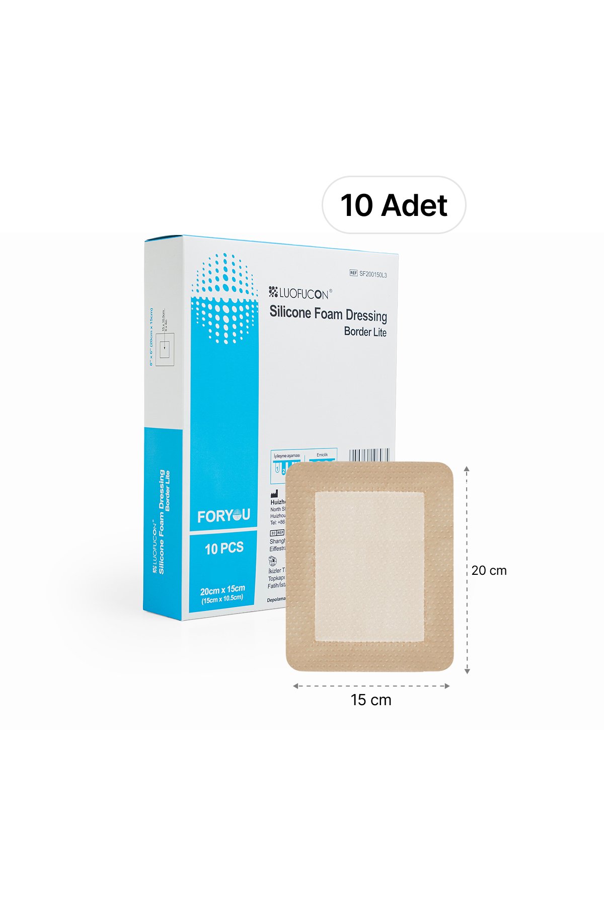 LUOFUCON® Silikon Köpük Yara Örtüsü (Border lite) – 20×15 cm (10 Adet)