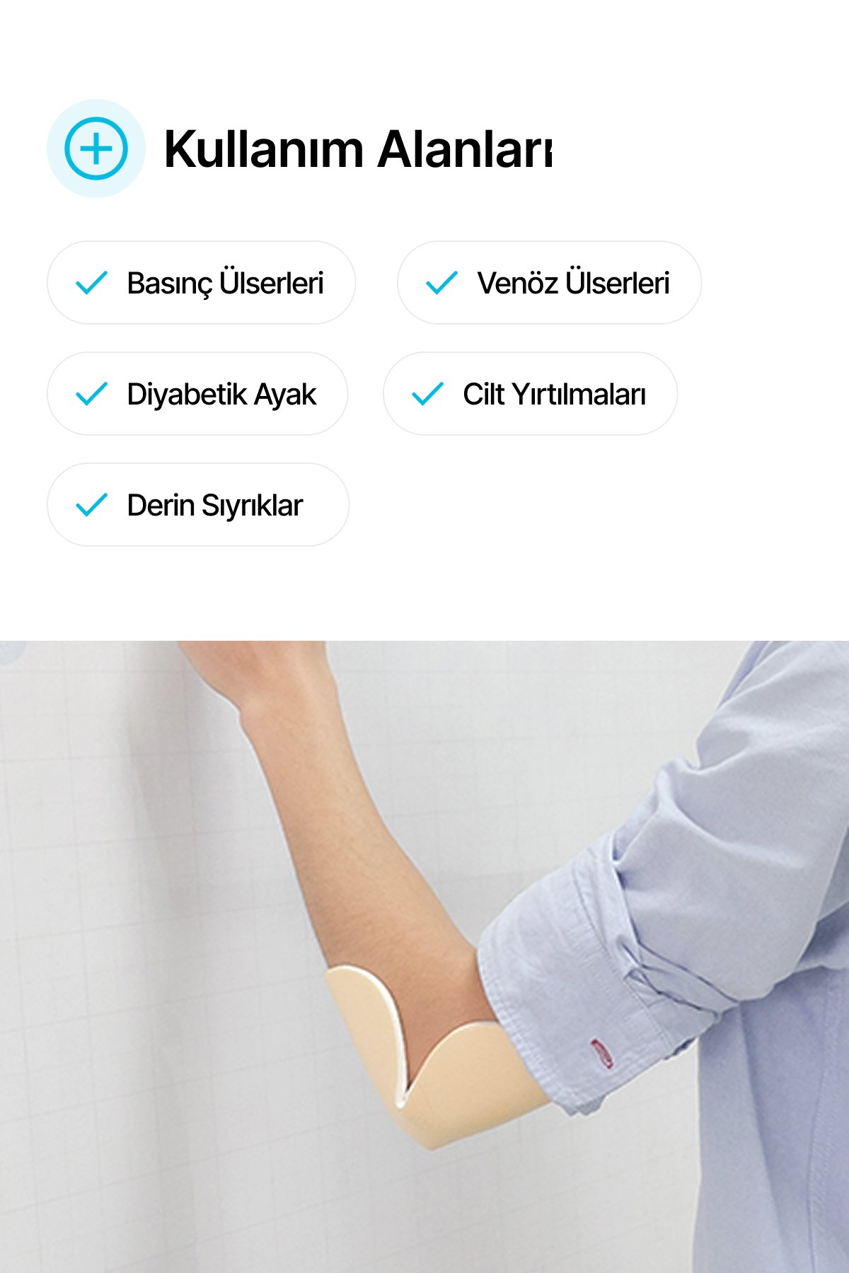 • Bası yaraları, diyabetik ayak ülserleri, venöz ülserler, cilt yırtıkları ve travmatik yaralanmalarda etkili bir çözümdür.