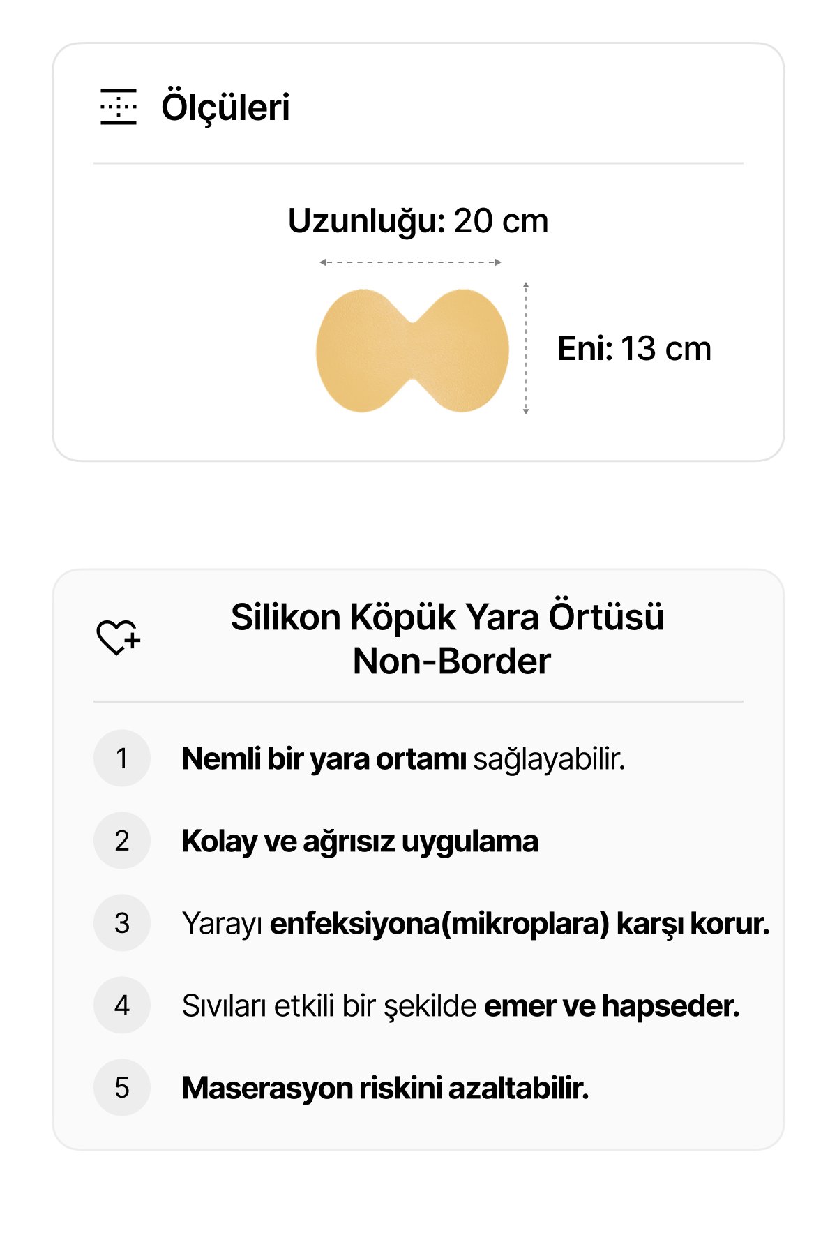 • Kesilebilir tasarımı sayesinde farklı boyutlardaki yaralarda kullanılabilir – bu da ekonomik kullanım avantajı sağlar.