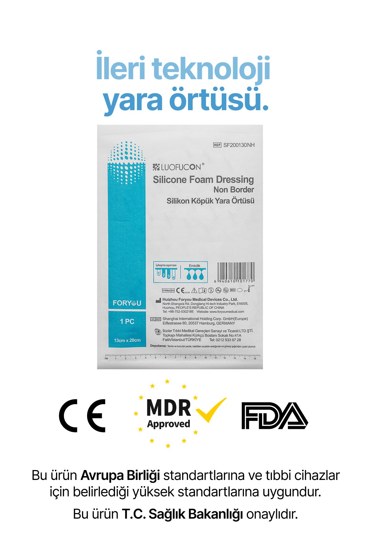 LUOFUCON® Silikon Köpük Yara Örtüsü (Non-Border) – 20×13 cm (1 Adet)