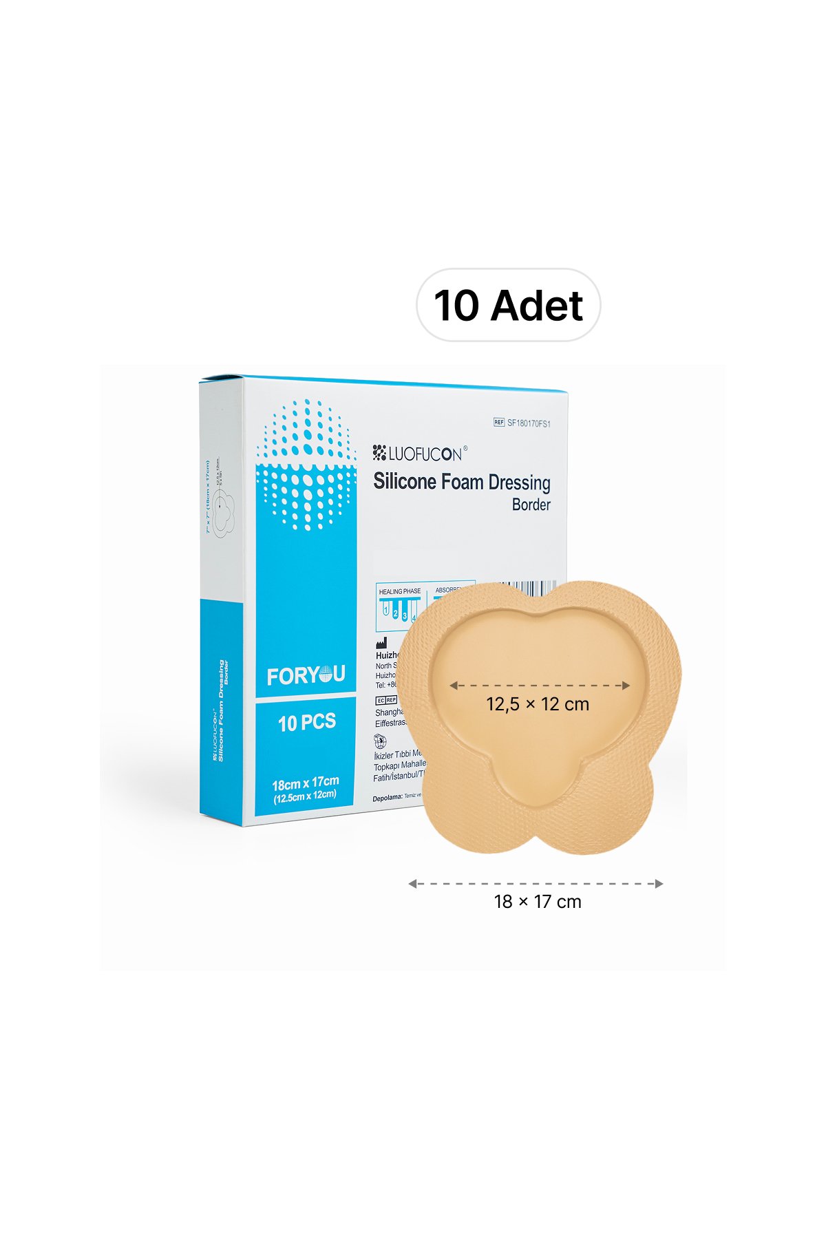 LUOFUCON® Silikon Köpük Yara Örtüsü (SAKRUM) – 18×17 cm (10 Adet)