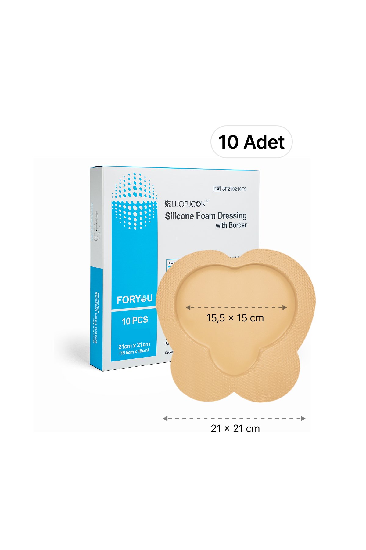 LUOFUCON® Silikon Köpük Yara Örtüsü (SAKRUM) – 21×21 cm (10 Adet)