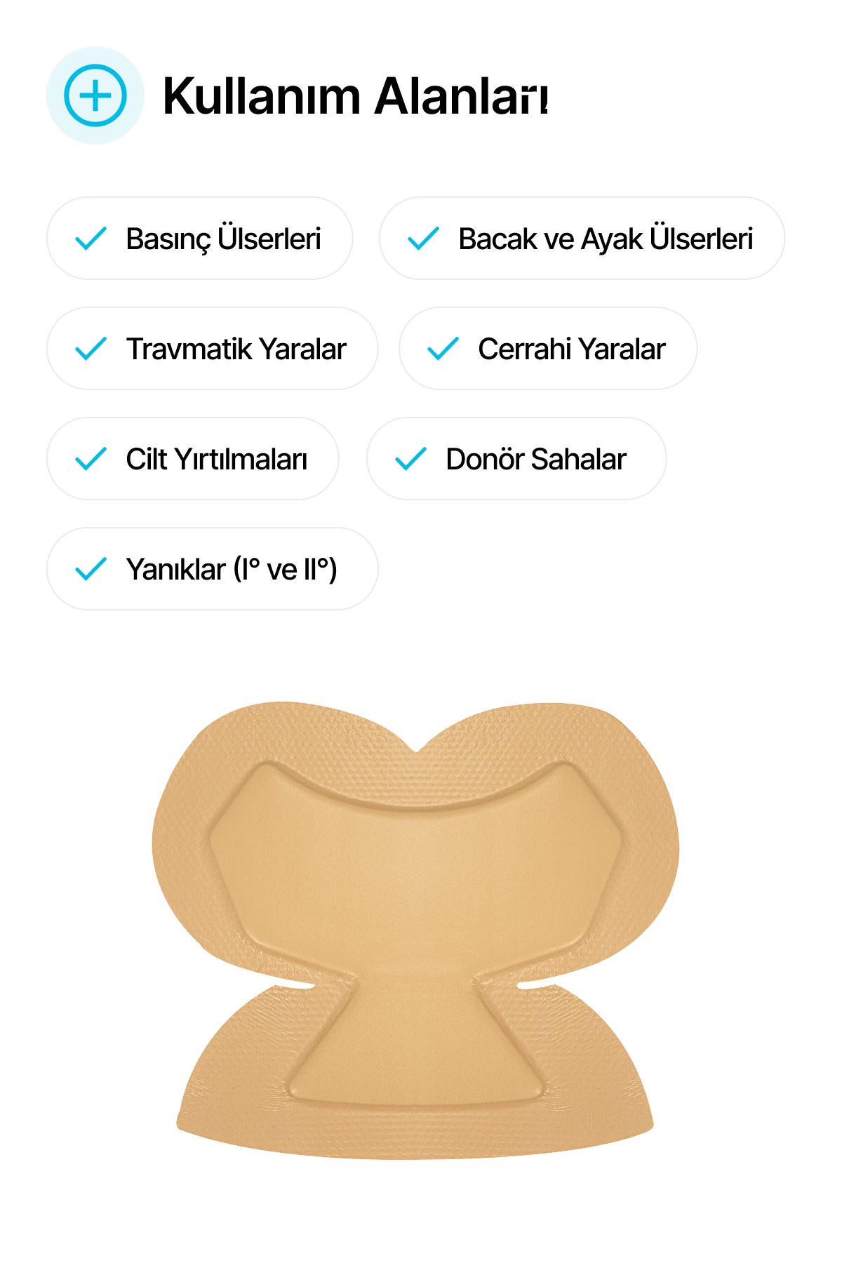 • Farklı vücut bölgelerine uyum sağlayabilen yapısıyla; her pansumanda rahat uygulama, güvenli koruma ve hasta konforunu bir araya getirir.