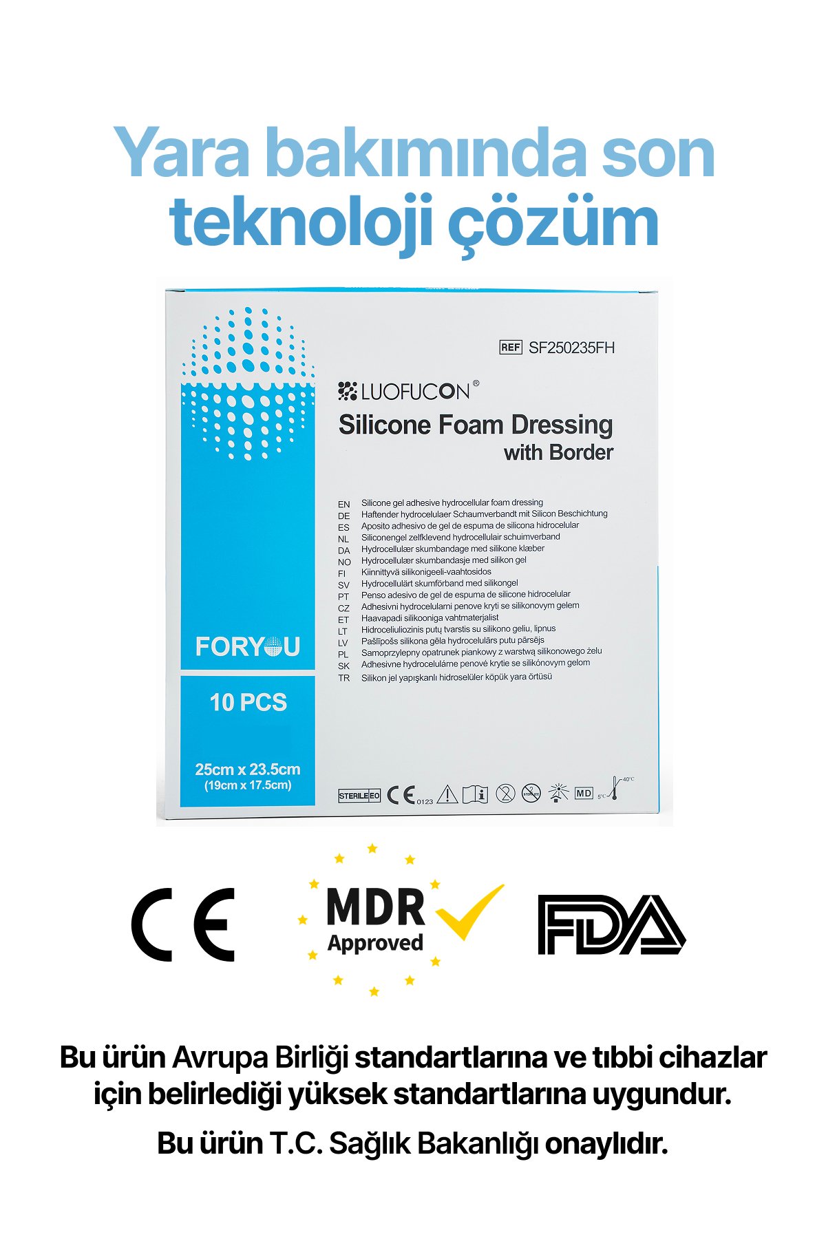 OptiSil teknolojisine sahip yumuşak silikon yara temas tabakası, süper emici ped tabaka ve buhar geçirgen, su geçirmez bir filmden oluşan LUOFUCON® Silikon Köpük Yara Örtüsü, gelişmiş yara sıvı yönetimi için ideal bir pansumandır. Dinamik sıvı yönetimine olanak tanıyan çok katmanlı yapı yara iyileşmesini destekleyen, travmayı en aza indiren ve pansuman değişimlerinde ağrıyı azaltan optimum nemli yara ortamı sağlar.
