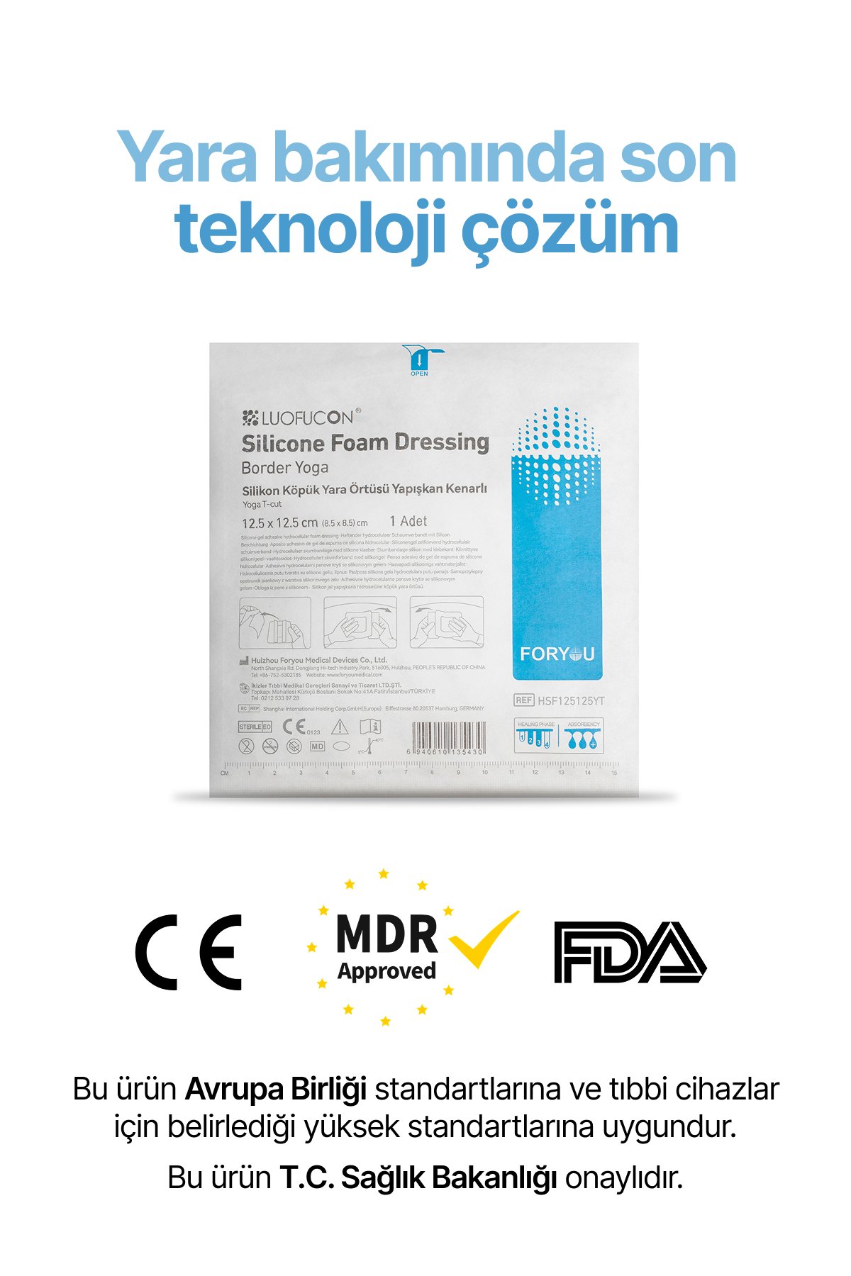 • LUOFUCON® YOGA Silikon Köpük Yara Örtüsü, hassas ciltler için özel olarak geliştirilmiş, ağrısız pansuman değişimi sağlayan, yüksek emici kapasiteli bir yara örtüsüdür.