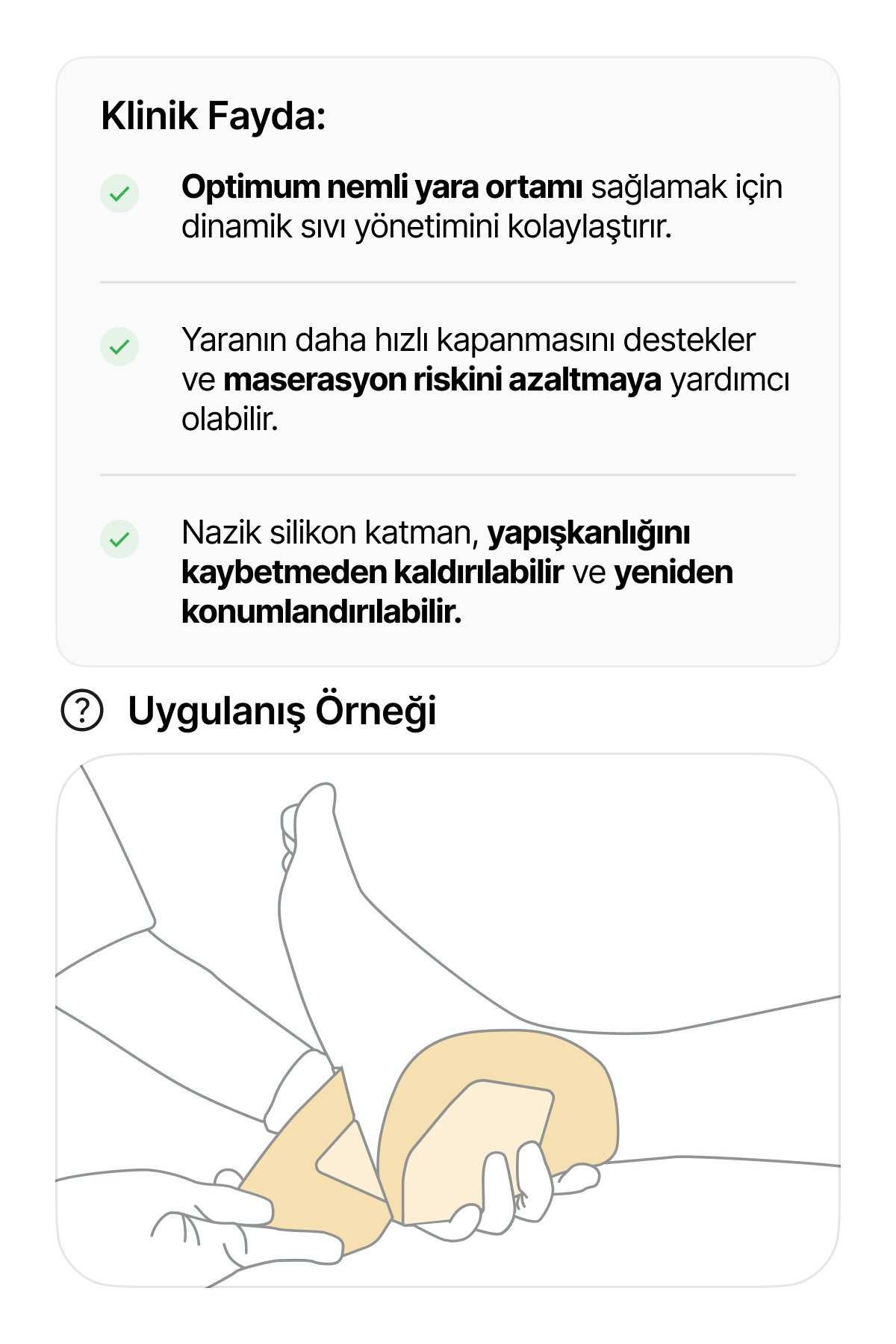 • Yara bakımı artık daha konforlu ve güvenli.