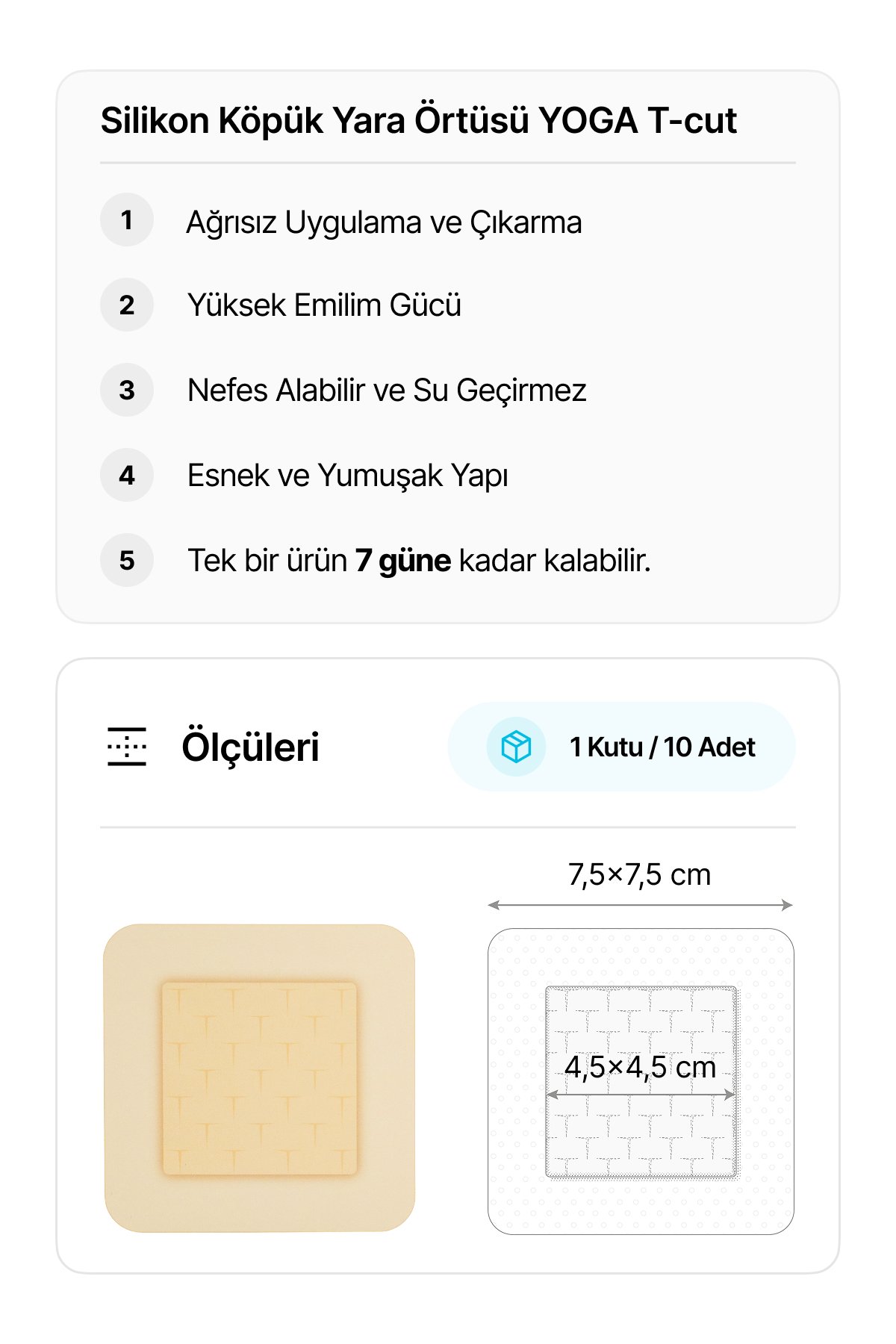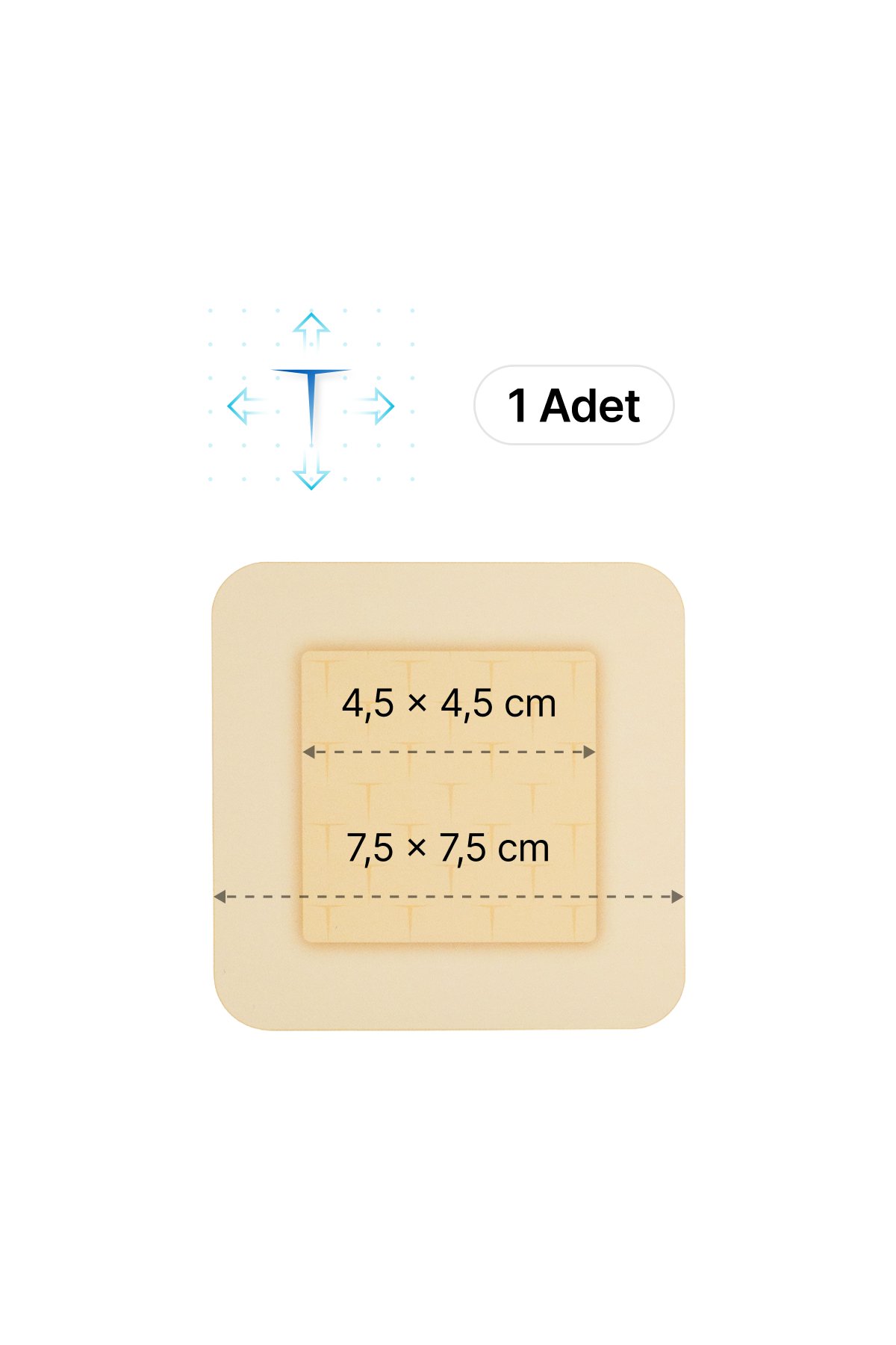 LUOFUCON® Silikon Köpük Yara Örtüsü YOGA T-CUT – 7,5×7,5 cm (1 Adet)