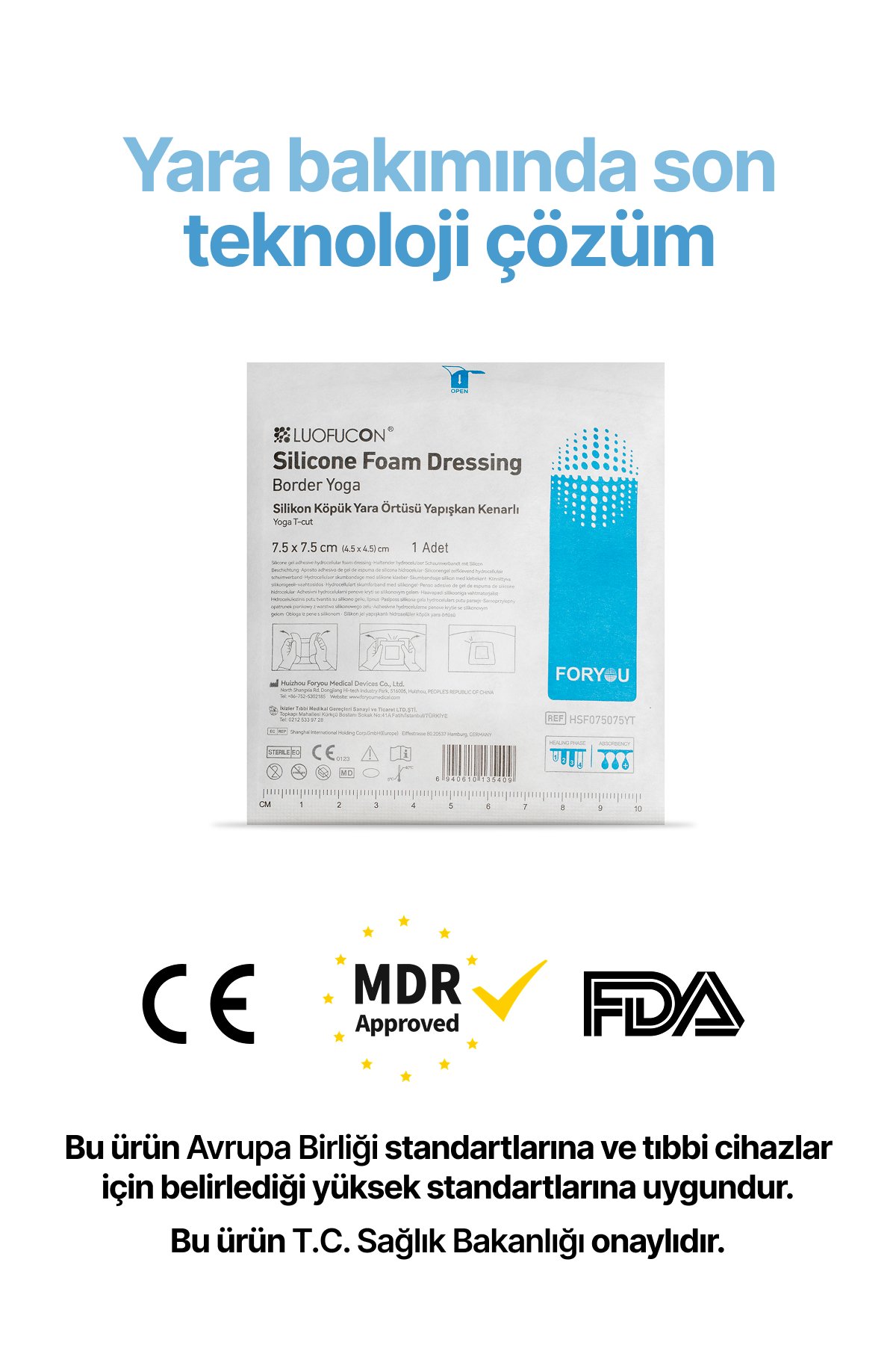 • LUOFUCON® YOGA Silikon Köpük Yara Örtüsü, hassas ciltler için özel olarak geliştirilmiş, ağrısız pansuman değişimi sağlayan, yüksek emici kapasiteli bir yara örtüsüdür.