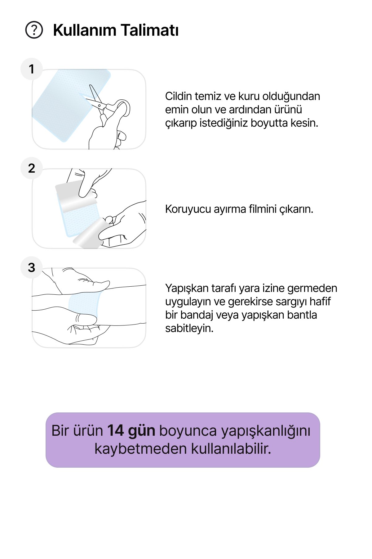• Ürün dövme sildirme, lazer, epilasyon vb. travmaları korumak adına seçici yapışkan silikon jel film tabakadır.